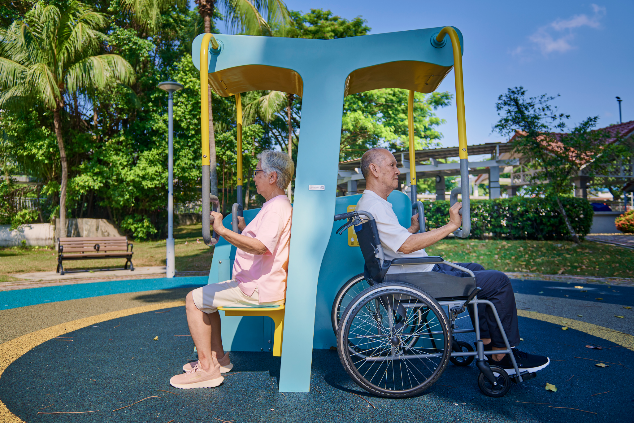 The SilverActive Chest Press gives frail seniors a safe, structured way to strengthen the chest, shoulders, and arms through a controlled pushing motion. Ergonomically calibrated for smaller Asian body frames and limited strength, it supports consistent upper-body conditioning — helping users maintain the functional capacity needed for independent daily living.